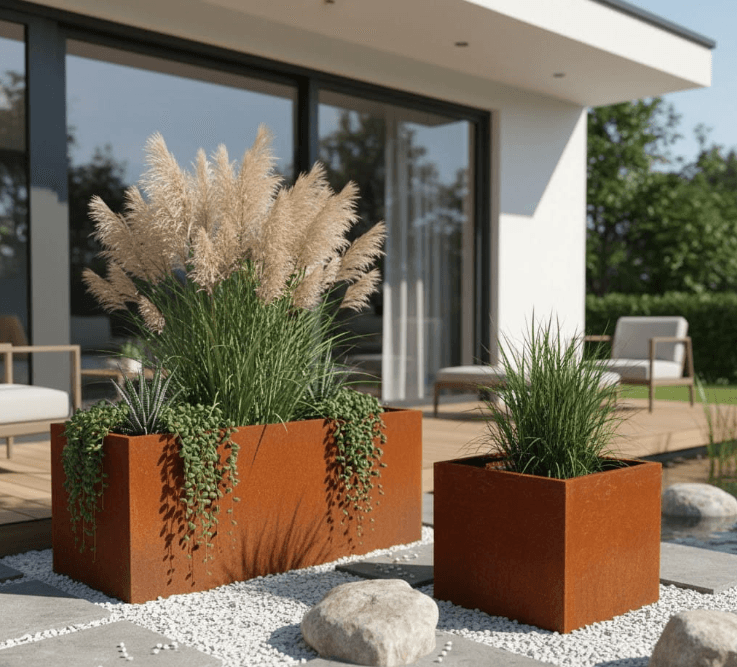 • Kiemuose ir terasose – kaip stilingi akcentai ar erdvės atskyrimo elementai.