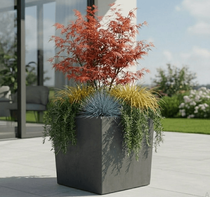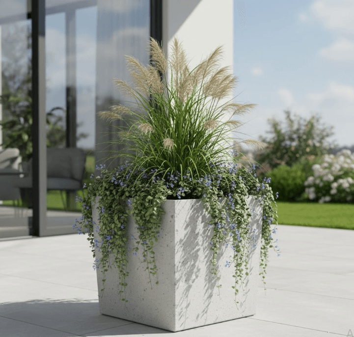 Šis modernus betoninis vazonas idealiai tinka tiek privačiam kiemui, tiek viešosioms erdvėms, kur svarbi ne tik išvaizda, bet ir patvarumas.