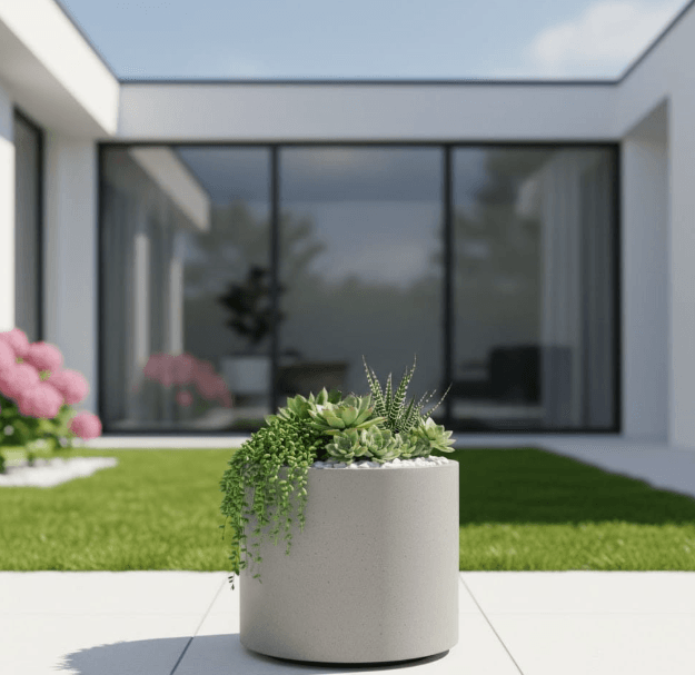 Šis modernus betoninis vazonas idealiai tinka tiek privačiam kiemui, tiek viešosioms erdvėms, kur svarbi ne tik išvaizda, bet ir patvarumas.